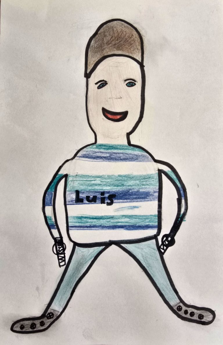 Bei Luis hat sich nach der 4ten Feldenkrais, bzw. Osteopathie Stunde das Körperbild erheblich verbessert, Proportionen auf dem Blatt, Farbigkeit, Art des zeichnens sind Ausdruck des Selbstbildes, was das gezeichnete Bild bestätigt.